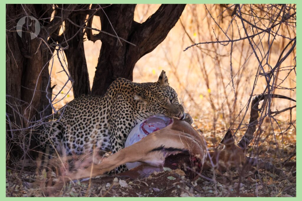 Our second day began with a beautiful morning game drive. Just when we thought the previous day couldn’t be topped, Samburu surprised us again. Along the way, we came across a leopard enjoying its breakfast — perched gracefully beneath a tree with its catch, completely unbothered by our presence. It was an unforgettable moment that perfectly captured the raw beauty of the wild.